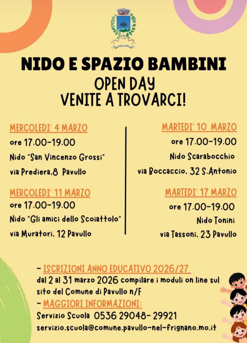 Settimana dedicata agli open day dei nidi sulComune di Pavullo. Partiamo noi mercoledì 4 marzo dalle 17 alle 19.