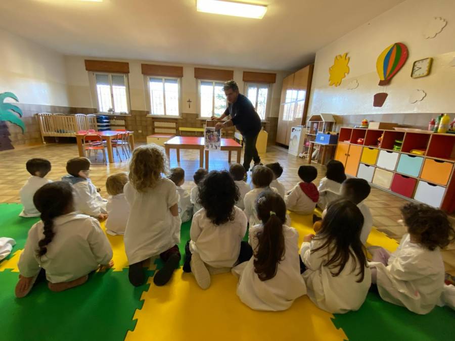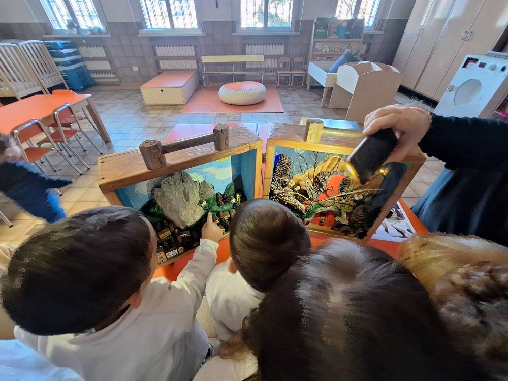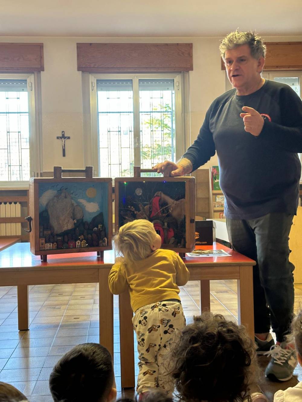 Laboratorio "Uno gnomo per amico"Lettura animata sugli gnomi con l'utilizzo della valigia dell'incanto realizzata interamente a mano dal signor Roberto.Ogni bambino colora il suo gnomo da portare a casa come amico portafortuna